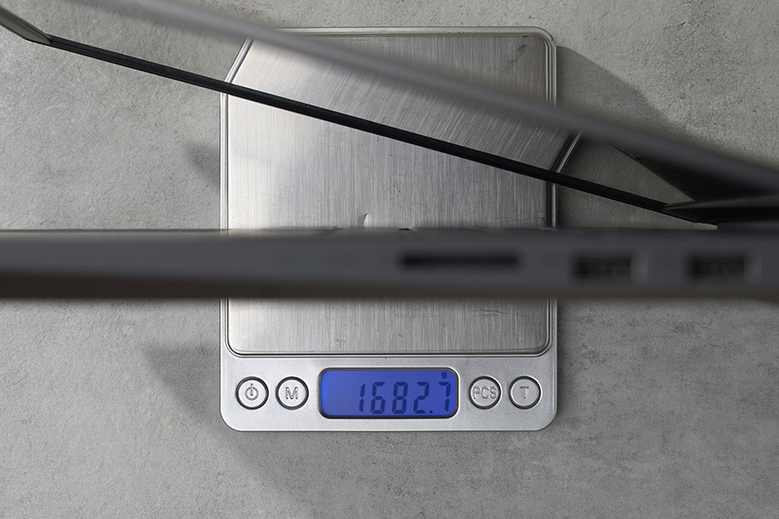 레노버 아이디어패드 슬림5-15IIL Major i5의 무게는 약 1.68kg으로 측정되었습니다. 15.6인치 디스플레이를 탑재했다는 점을 고려하면 휴대하는데 크게 부담이 되는 수준은 아니라고 판단되었습니다.