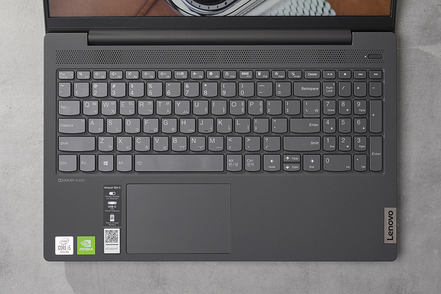 레노버 아이디어패드 슬림5-15IIL Major i5에는 숫자 키패드를 포함한 풀사이즈 키보드가 탑재되었습니다. 그래서 엑셀과 같이 숫자 입력이 많은 문서 작업도 편리하게 할 수 있습니다.