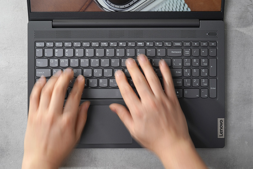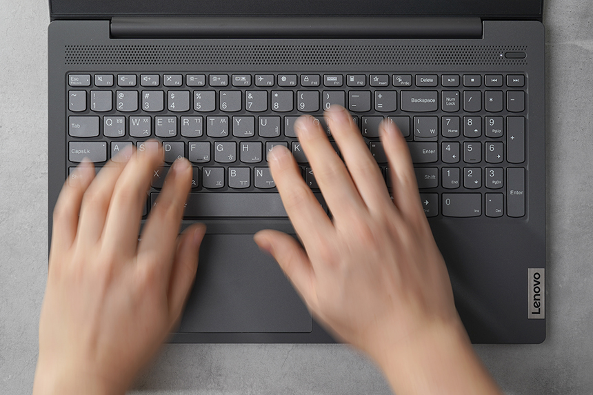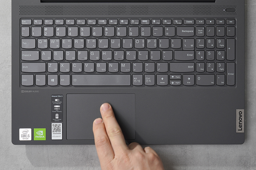 레노버 아이디어패드 슬림5-15IIL Major i5에는 숫자 키패드를 포함한 풀사이즈 키보드가 탑재되었습니다. 그래서 엑셀과 같이 숫자 입력이 많은 문서 작업도 편리하게 할 수 있습니다.