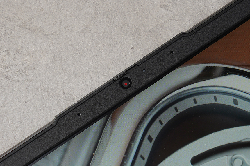 디스플레이의 위쪽에는 TrueBlock 프라이버시 셔터가 탑재되었습니다. 그래서 웹캠을 사용하지 않을 때는 물리적으로 차단할 수 있습니다. 레노버의 노트북에서만 살펴볼 수 있는 독특한 특징들입니다.