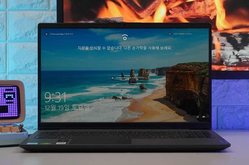 지문 리더기가 내장된 파워 버튼을 이용해서 간단하게 로그인을 할 수 있습니다. 주변에 사람이 많은 공간에서 노트북을 활용할 때 유용할 것 같습니다. 생각 이상으로 편리한 부분입니다.