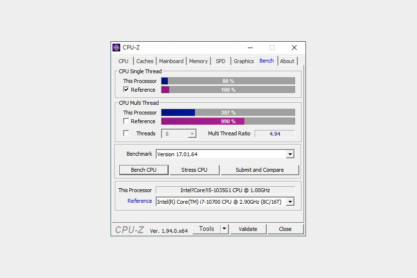 10세대 인텔 코어 i5-1035G1 프로세서의 싱글 스레드 성능은 데스크톱용 CPU와 비교해도 크게 부족하지는 않은 편입니다. 그래서 기본적인 작업에서는 부족함을 느끼지 않을 것 같습니다.