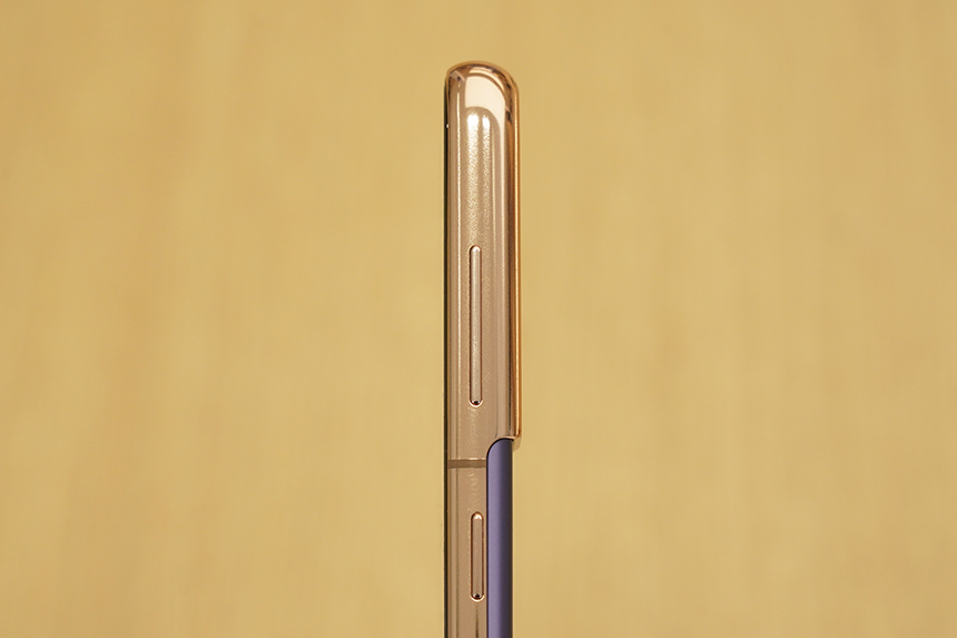 갤럭시 S21의 색상은 총 4가지로 출시되었습니다. 그중에서 가장 인상적이라고 생각했던 컬러는 바로 팬텀 바이올렛입니다. 특히 무광으로 마무리된 뒷면이 고급스러운 느낌을 주는 편입니다. 참고로 갤럭시 S21 기본 모델은 시리즈의 다른 제품과는 다르게 뒷면이 유리가 아니라 플라스틱 소재로 마무리되었습니다.