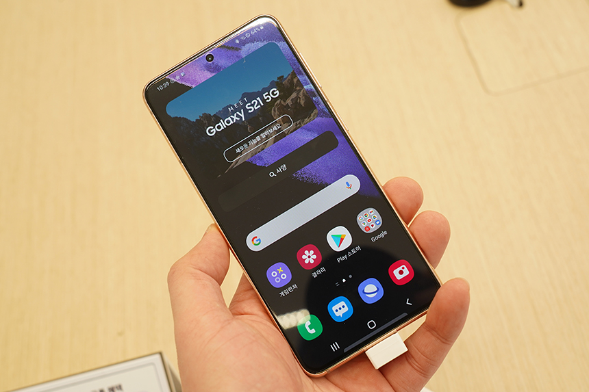다시 색상을 살펴보면 팬텀 핑크의 경우에는 갤럭시 S21의 같은 컬러와는 다르게 약간 연하다는 느낌을 받았습니다. 플라스틱과 유리 후면 마감재의 차이인지는 정확하지 않지만 야간 달랐습니다.