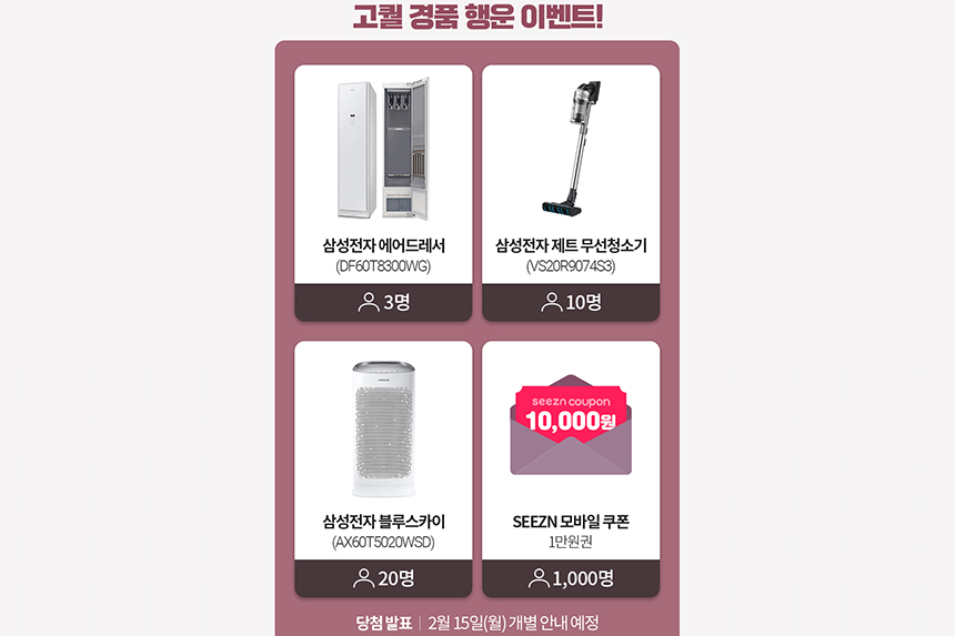 우선 21일까지 사전예약하고 28일까지 개통을 완료한 고객들을 대상으로 삼성전자 에어드레서나 제트 무선청소기 그리고 블루스카이 공기청정기가 추첨을 통해서 제공됩니다.