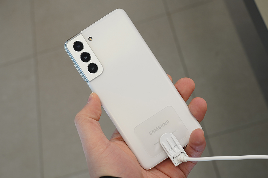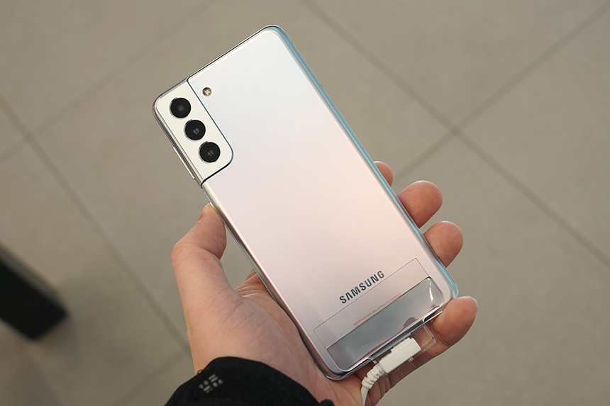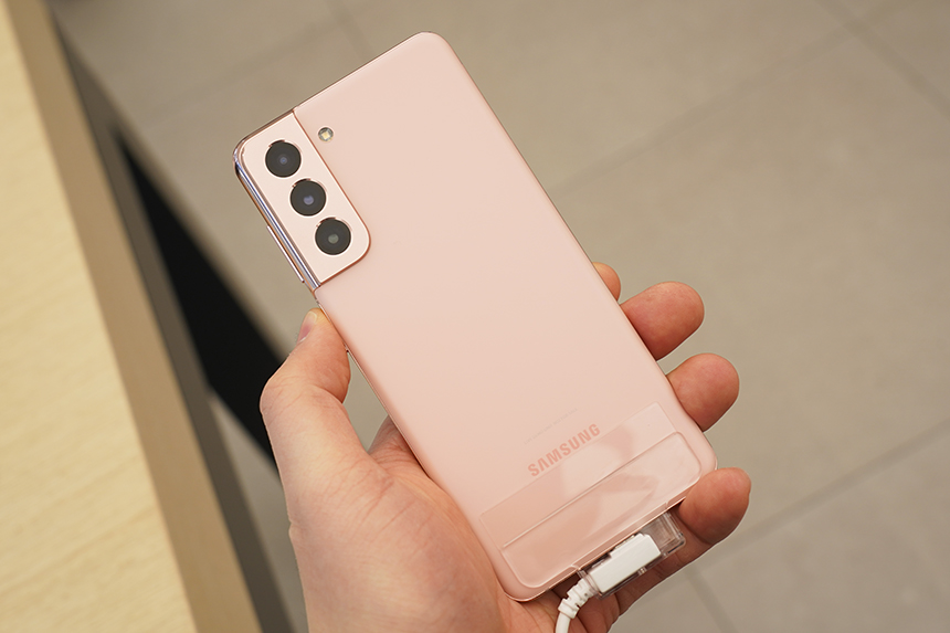 다시 색상을 살펴보면 팬텀 핑크의 경우에는 갤럭시 S21의 같은 컬러와는 다르게 약간 연하다는 느낌을 받았습니다. 플라스틱과 유리 후면 마감재의 차이인지는 정확하지 않지만 야간 달랐습니다.