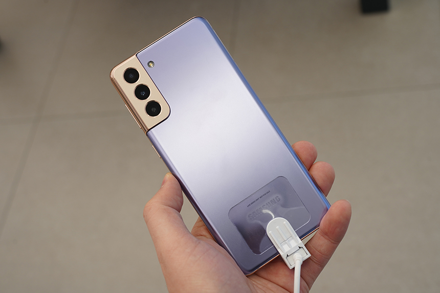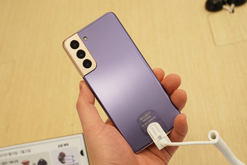 갤럭시 S21의 색상은 총 4가지로 출시되었습니다. 그중에서 가장 인상적이라고 생각했던 컬러는 바로 팬텀 바이올렛입니다. 특히 무광으로 마무리된 뒷면이 고급스러운 느낌을 주는 편입니다. 참고로 갤럭시 S21 기본 모델은 시리즈의 다른 제품과는 다르게 뒷면이 유리가 아니라 플라스틱 소재로 마무리되었습니다.