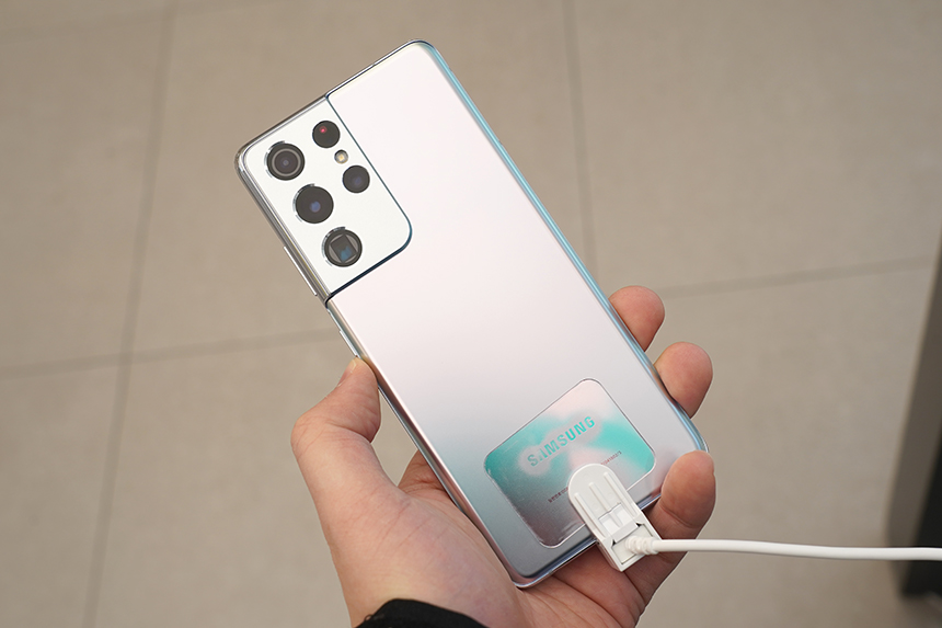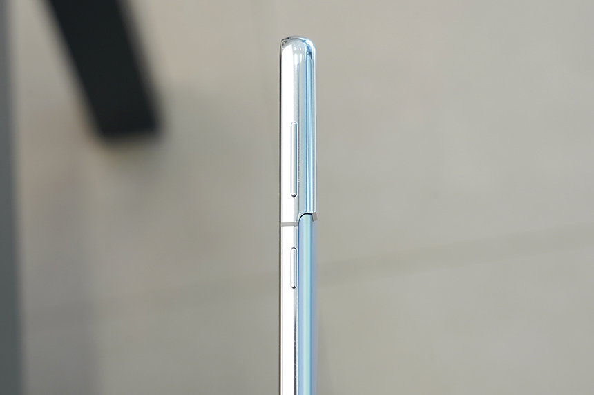 팬텀 실버는 갤럭시 S21 플러스와 울트라에서만 선택할 수 있는 컬러입니다. 예전 갤럭시 S10 프리즘 화이트처럼 약간 홀로그램 느낌처럼 빛의 반사에 따라서 색상이 약간 변화하는 점이 인상적이었습니다.