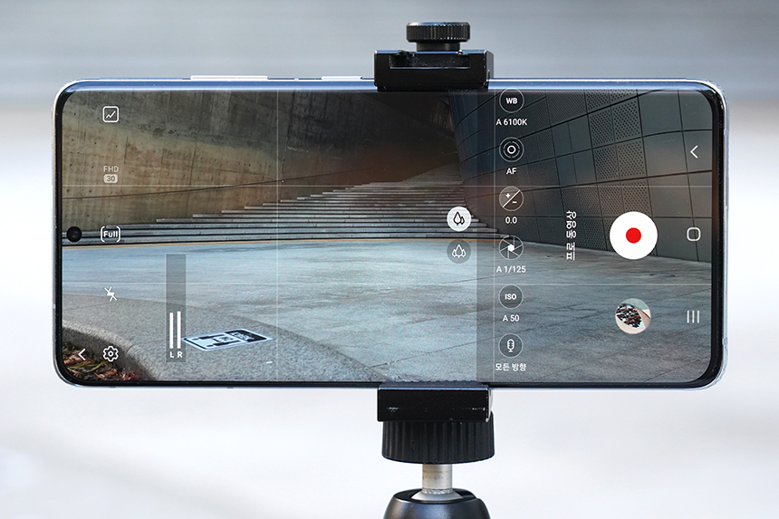 슈퍼 스테디 기능을 이용하면 해상도는 FULL HD로 낮아지지만 흔들림이 적은 동영상을 촬영할 수 있습니다. 이동하는 도중에도 브이로그를 촬영하기를 원하는 분들에게 유용한 기능입니다.