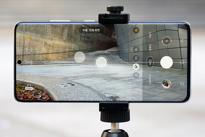 갤럭시 S21 울트라의 광각 카메라는 1억 800만 화소의 센서가 탑재되었습니다. 그래서 상황에 맞게 전환할 수 있습니다. 특히 디테일을 살려야 하는 사진을 촬영할 때 108MP로 설정하는 것이 좋을 것 같습니다.