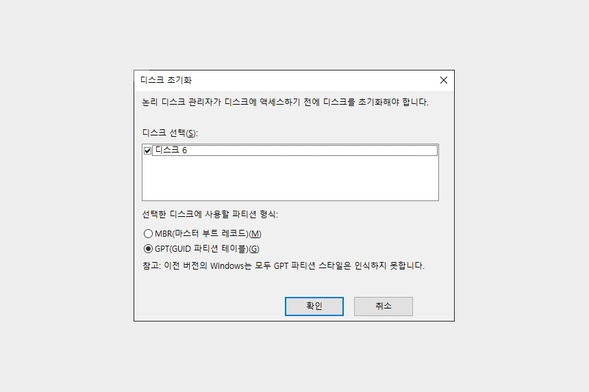 마이크론 Crucial MX500 500GB를 컴퓨터에 장착하기 위해서는 초기화 과정이 필요합니다. 우선 컴퓨터 관리를 실행시키고 저장소의 디스크 관리를 선택하면 디스크 초기화 관련 메뉴가 표시됩니다.