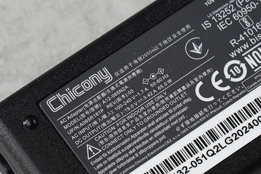 어댑터의 스펙을 확인해 보면 입력은 프리볼트를 지원해서 커넥터만 맞으면 시국이 정리된 후에 해외에서도 사용할 수 있습니다. 그리고 출력은 19V, 3.42A 약 65W로 다른 노트북과 크게 다르지 않습니다.