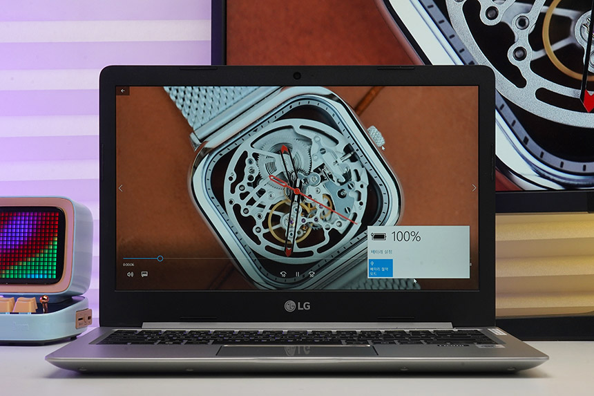 LG전자 울트라PC 13UD50N-GX50K에는 51Wh 용량의 배터리가 탑재되었고 화면 밝기 50% 그리고 배터리 절약모드에 동영상을 약 13시간 28분 정도 재생할 수 있었습니다. 기대 이상이라고 판단되었습니다.