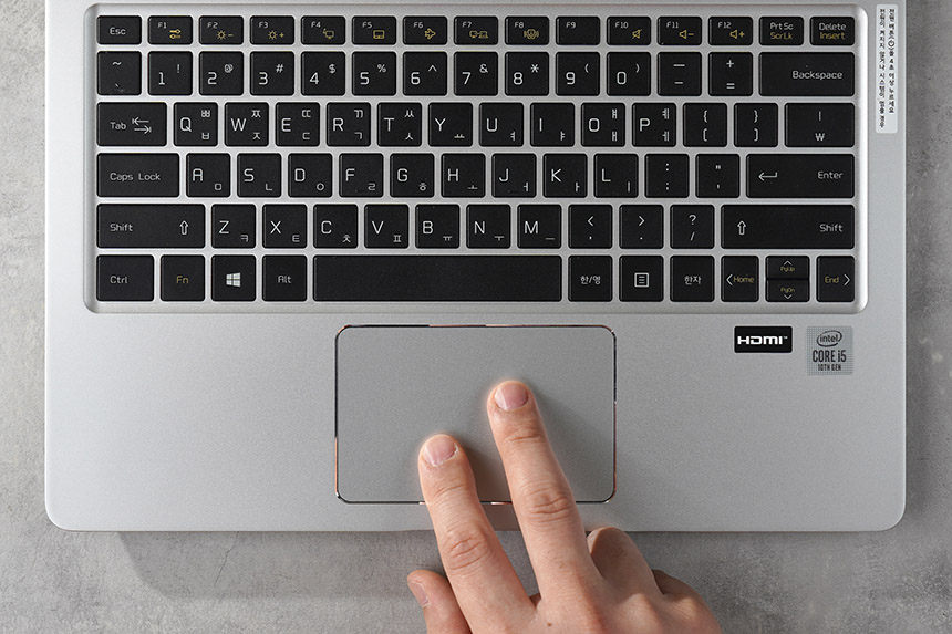 터치패드는 제스처 기능을 지원합니다. 그래서 마우스 없이도 기본적인 작업은 큰 불편함 없이 할 수 있습니다. 그리고 다양한 옵션을 제공하기 때문에 자신의 필요에 맞게 기능을 커스텀할 수 있습니다.
