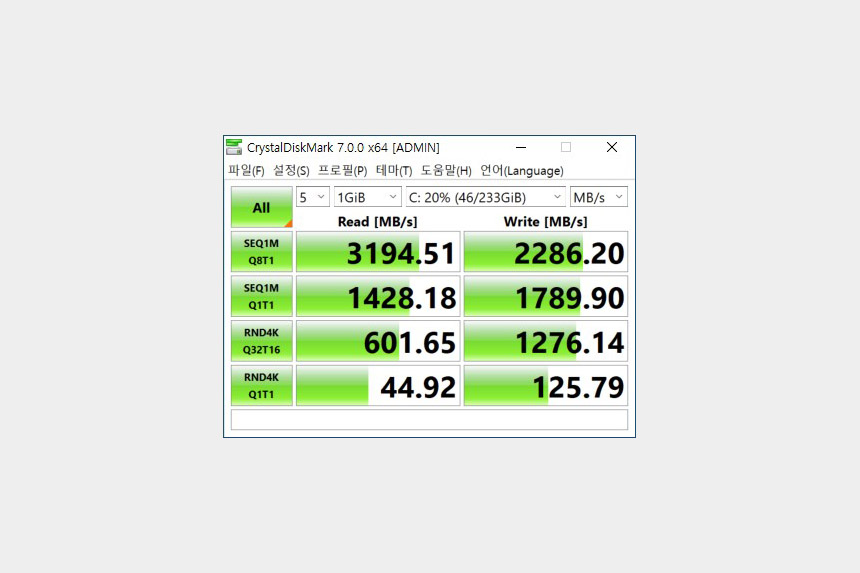 LG전자 울트라PC 13UD50N-GX50K에는 256GB 용량의 NVMe SSD가 탑재되었습니다. SATA3 방식과 비교해서 속도가 상당히 빠르다는 장점이 있습니다. 특히 읽기 속도는 일반적으로 노트북에 탑재되는 제품 중에서 최고 수준이라고 할 수 있습니다.