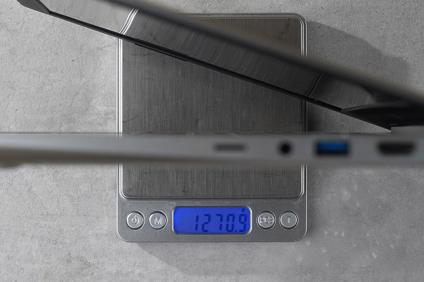 LG전자 울트라PC 13UD50N-GX50K의 무게는 약 1.27kg으로 측정되었습니다. 15.6인치 디스플레이를 탑재한 노트북과 비교해서 상대적으로 가벼운 편이어서 휴대성 좋은 노트북을 찾는 분들에게 유용할 것으로 예상합니다.