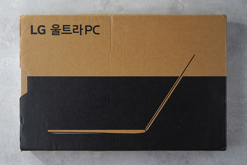 LG전자 울트라PC 13UD50N-GX50K의 박스는 콤팩트한 무지 형태로 디자인되었습니다. 그리고 재미있는 부분은 패키지의 개봉 방식이 슬라이드 형식으로 제작되었다는 점입니다. LG전자의 다른 노트북과는 약간의 차이가 있습니다.
