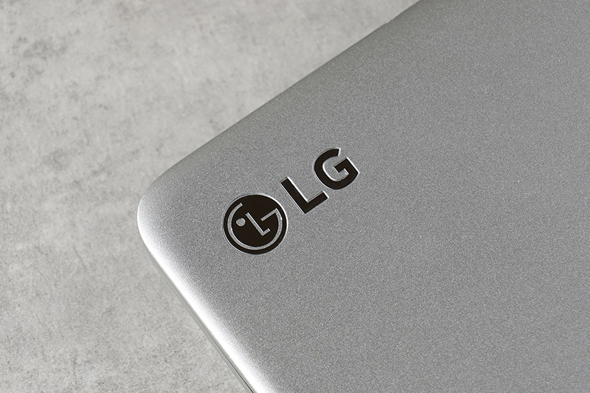 상판의 모서리 부분에는 심플한 디자인에 포인트가 되는 LG전자의 로고가 각인되어 있습니다. 전체적으로 모나지 않은 디자인을 채택했다는 점이 LG전자 울트라PC 13UD50N-GX50K의 장점 중의 하나입니다.
