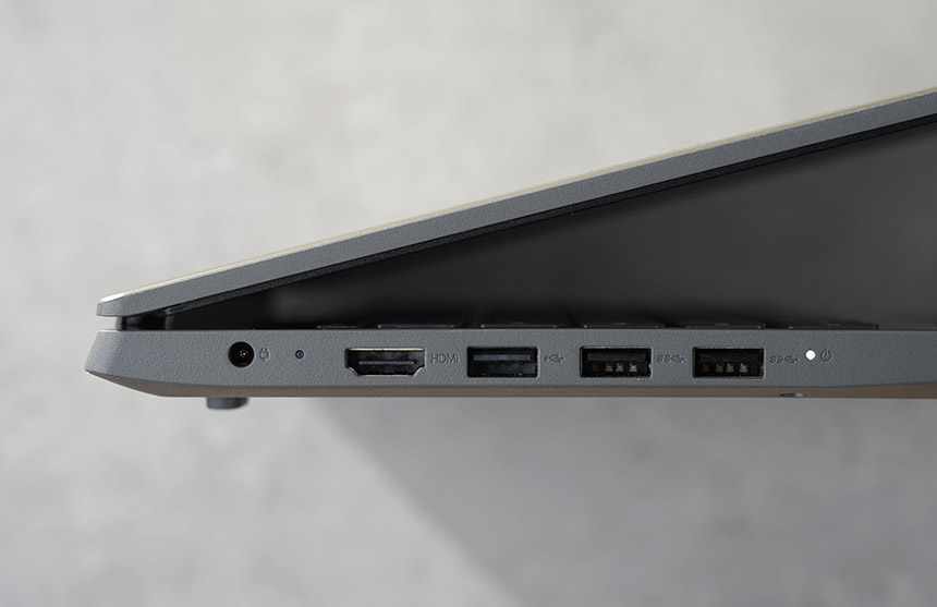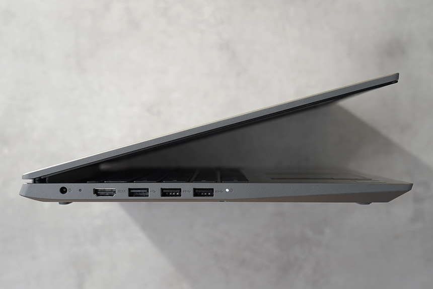 레노버 아이디어패드 슬림3 15IIL 5D의 입출력 포트를 살펴보면 왼쪽에는 전원 단자와 HDMI 그리고 하나의 USB 2.0과 2개의 USB 3.0포트가 배치되어 있습니다.