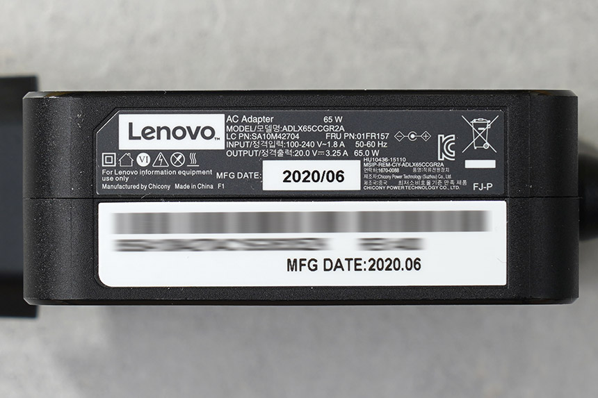 어댑터의 스펙을 살펴보면 입력은 프리볼트를 지원해서 코로나19 시대가 끝난 시점에 해외에서도 전원 단자만 맞으면 바로 사용할 수 있고 출력은 20V, 3.25A 65W로 무난한 편입니다.