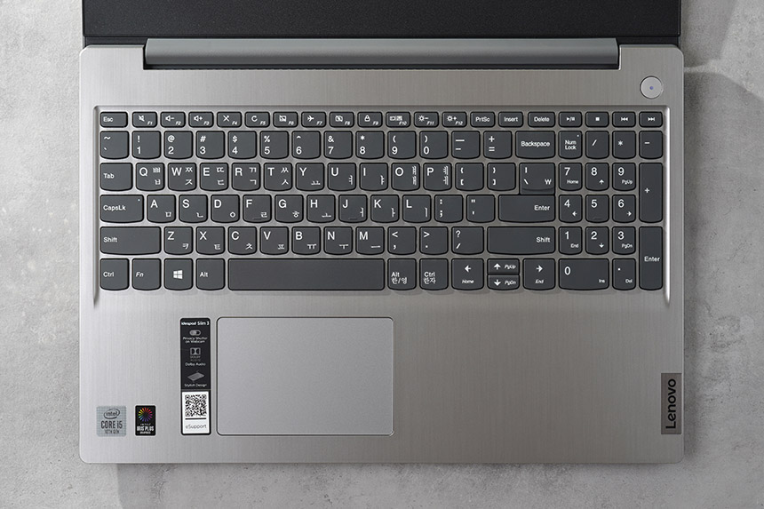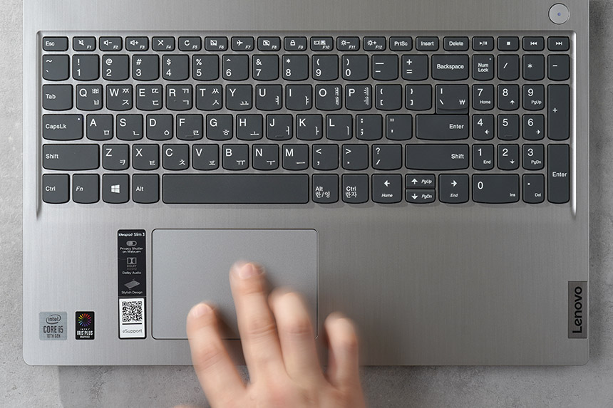 레노버 아이디어패드 슬림3 15IIL 5D의 키보드에는 숫자 키패드가 포함되어 있습니다. 그래서 숫자 입력이 많은 워드나 엑셀과 같은 문서 작업을 편리하게 할 수 있습니다.