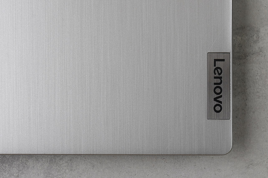 그리고 상판의 모서리 부분에는 심플한 디자인에 포인트가 되는 레노버의 로고가 각인되어 있습니다. 대부분의 레노버 노트북들이 같은 자리에 로고가 들어가 있습니다.