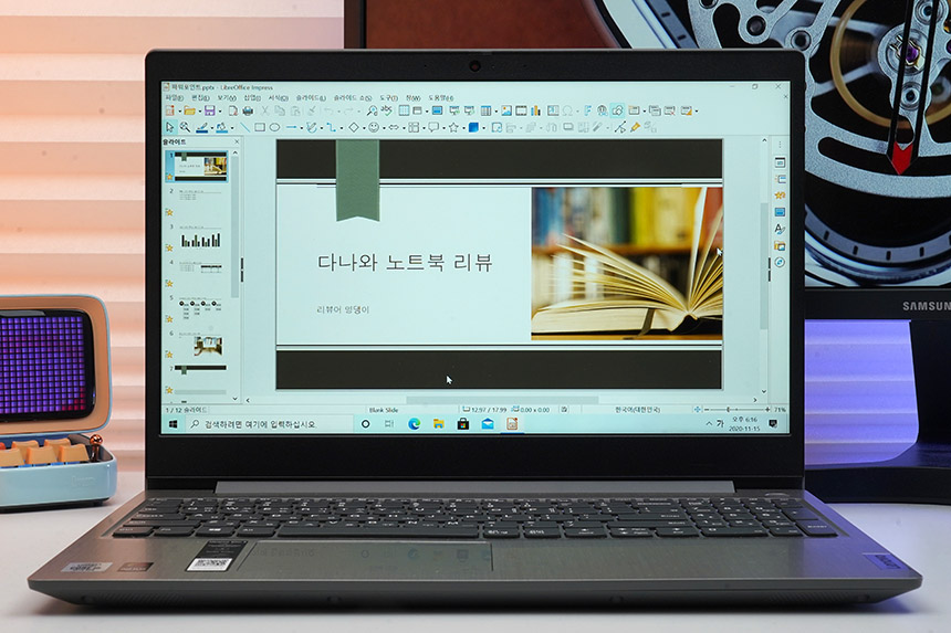 레노버 아이디어패드 슬림3 15IIL 5D에는 HDMI 단자가 내장되어 있습니다. 그래서 파워포인트 문서를 편집하고 프로젝터를 연결해서 바로 프레젠테이션도 할 수도 있습니다.