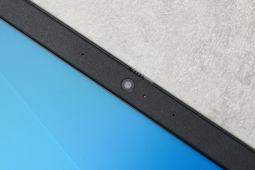 화면의 위쪽에는 웹캠 해킹을 물리적으로 차단할 수 있는 프라이버시 셔터가 장착되어 있습니다. 중국 회사인 레노버 노트북의 재미있는 특징 중의 하나라고 할 수 있습니다. 사용하지 않을 때는 닫아두는 것을 추천합니다.