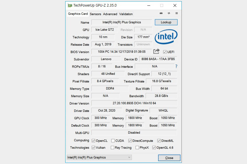 10세대 인텔 코어 i5-1035G4 프로세서에는 인텔 Iris Plus 그래픽카드가 내장되어 있습니다. 많은 분이 궁금해하는 롤이 제대로 플레이되는지는 잠시 후에 확인해 보도록 하겠습니다.