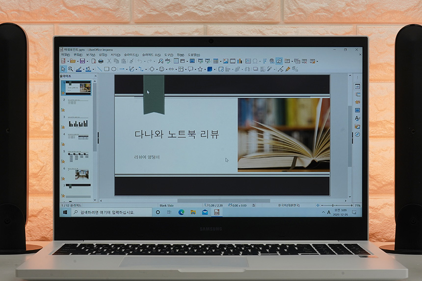 다른 노트북과 같이 HDMI 단자를 내장하고 있어서 파워포인트 문서를 작성하거나 편집하고 프로젝터를 연결해서 바로 프레젠테이션을 진행할 수 있습니다.