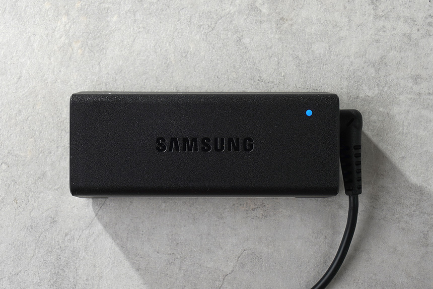 케이블을 연결해서 사용하는 형태의 어댑터는 콤팩트한 크기로 제작되어서 노트북과 함께 불편함 없이 휴대할 수 있습니다. 그리고 위쪽에는 전원이 켜져 있는 것을 알려주는 LED가 배치되어 있습니다.