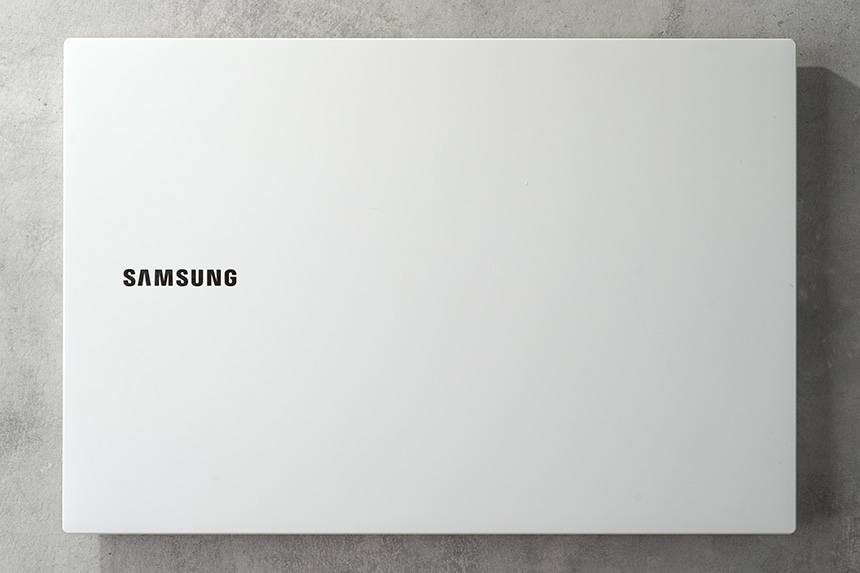 삼성전자 노트북 플러스 NT550XCR-AD3A의 상판은 퓨어 화이트 색상으로 제작되었습니다. 독특하지는 않은 편이어서 직장인들이 무난하게 사용할 수 있습니다. 특히 저는 네모반듯한 솔리디티 디자인이 상당히 인상적이었습니다.