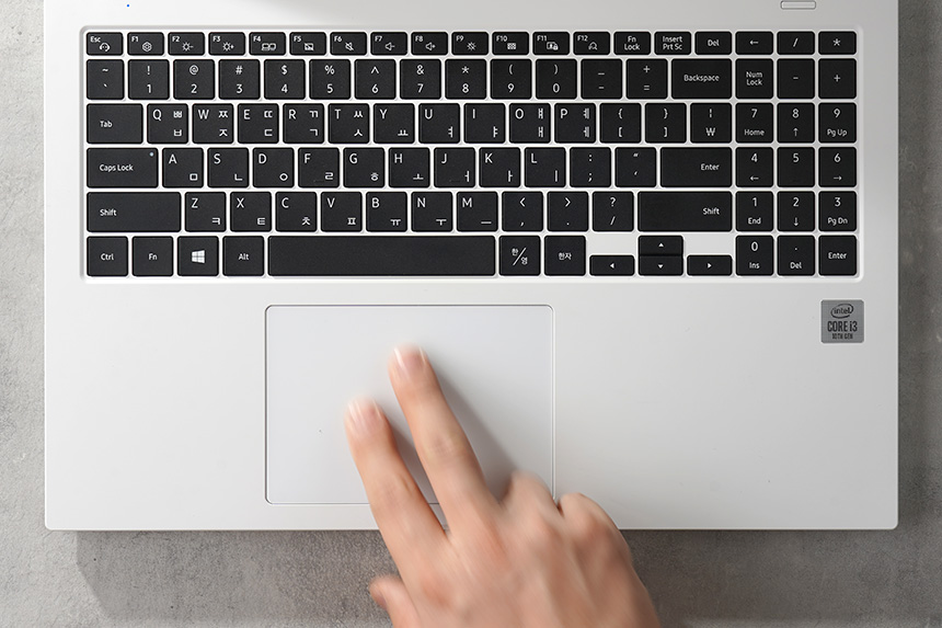 키보드는 15.6인치 디스플레이를 탑재한 노트북답게 숫자키를 내장하고 있습니다. 엑셀과 같은 문서 작업을 많이 하는 분들에게 유용한 부분이라고 할 수 있습니다.