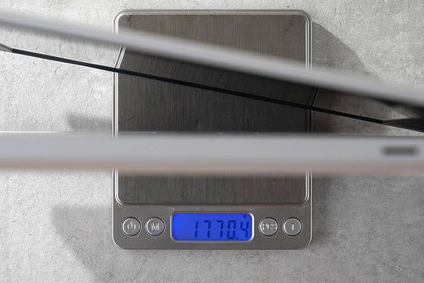 삼성전자 노트북 플러스 NT550XCR-AD3A의 무게는 약 1.77KG으로 측정되었습니다. 15.6인치 디스플레이를 탑재하고 있다는 점을 생각하면 크게 부담스러운 편은 아니라고 생각되었습니다.