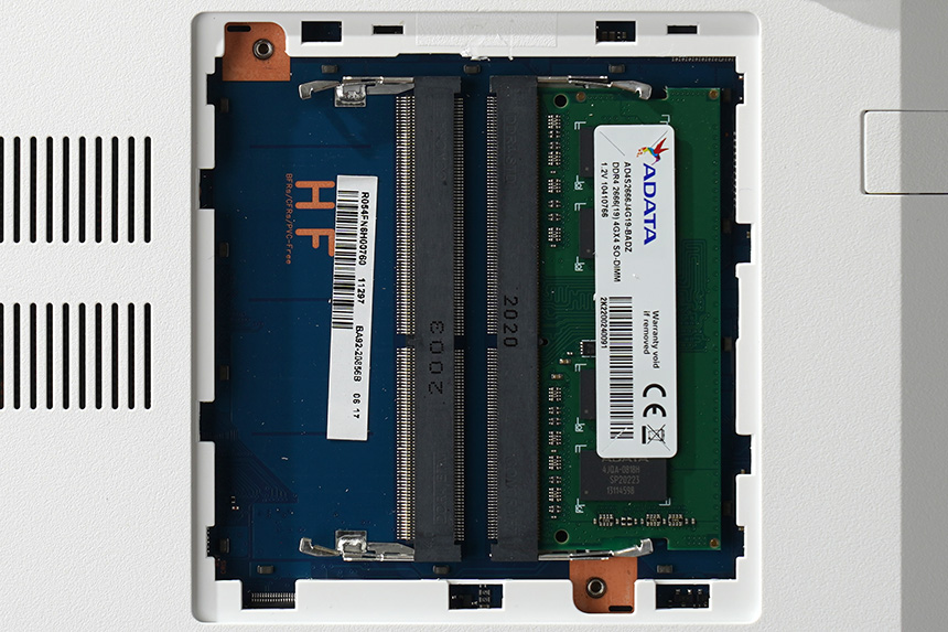 메모리를 장착할 수 있는 슬롯도 2개가 준비되어 있는데요. 기본으로 DDR4 4GB가 탑재되었고 자신의 사용 패턴에 따라서 용량을 추가할 수 있습니다. 가성비 노트북이기 때문에 투자 대비 효용을 잘 고려해 보아야 합니다.
