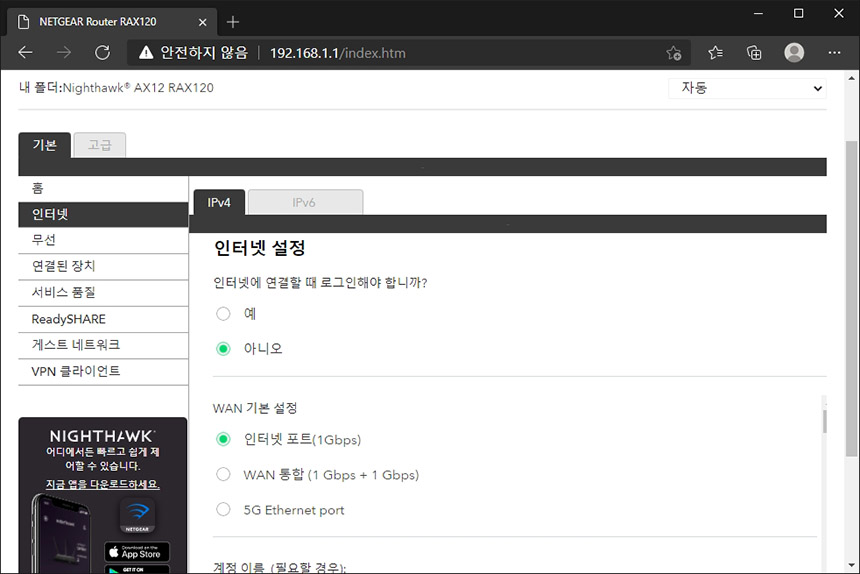 넷기어 RAX120 와이파이6 공유기는 NIGHTHAWK 앱을 통해서 초기 설정을 진행할 수 있습니다. 컴퓨터를 통해서도 진행할 수 있기는 하지만 스마트폰을 이용하는 것이 조금 더 편리한 것 같습니다.
