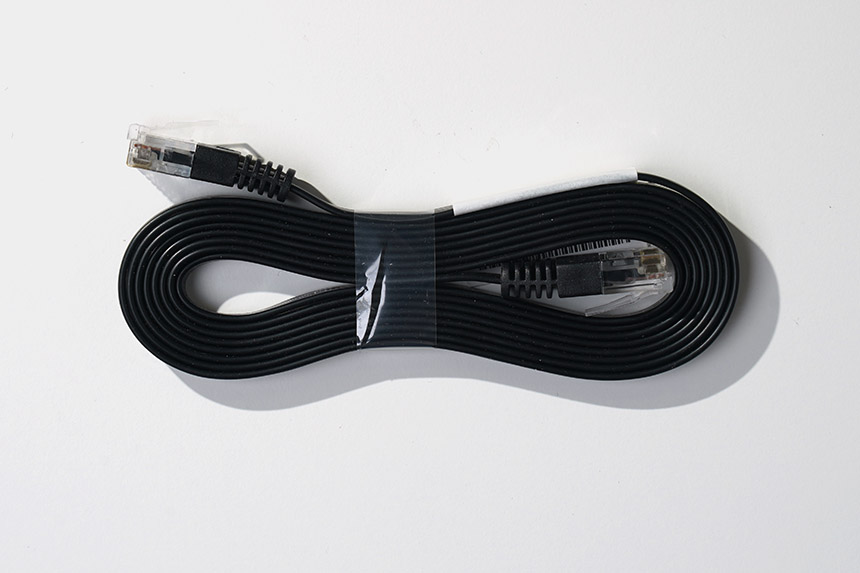 플랫한 스타일의 이더넷 케이블도 하나 기본으로 제공됩니다. 컴퓨터와 넷기어 RAX120 와이파이6 공유기를 연결하는 용도로 활용하면 좋을 것 같습니다. 데스크톱을 제외한 다른 네트워크 장비들은 전용 케이블을 제공하는 경우가 많습니다.