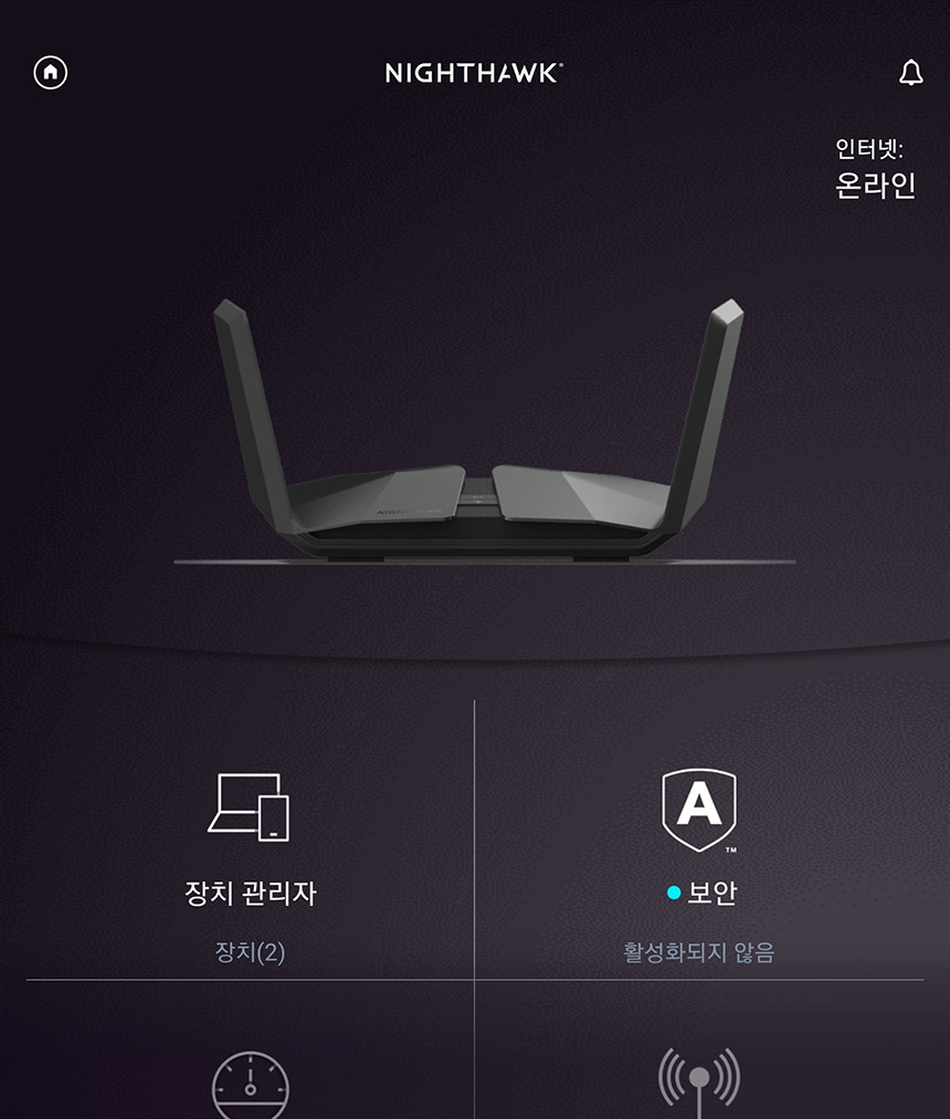 나이트호크 앱을 살펴보면 장치 관리자나 인터넷 속도 그리고 WiFi 분석 등 다양한 기능들이 준비되어 있습니다. 관리자 페이지에 접속하지 않고도 간단하게 설정을 변경할 수 있습니다.