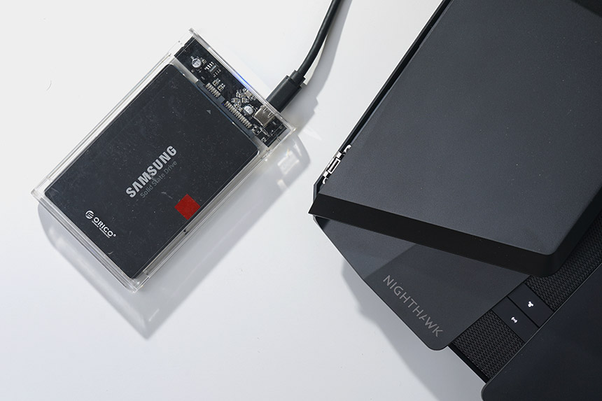 넷기어 RAX120 와이파이6 공유기에는 2개의 USB 3.0 포트가 탑재되었습니다. 그래서 외장하드나 SSD를 장착해서 간이 NAS로 활용할 수 있습니다. 전문적인 제품과 비교하면 부족할지 모르지만 간단한 데이터 공유 용도로는 충분한 편입니다.