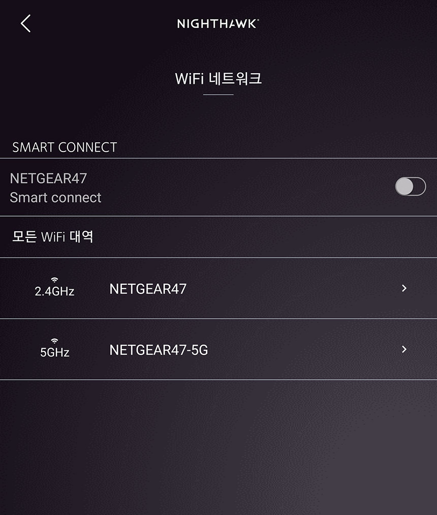 WiFi 설정에서는 2.4GHz나 5GHz 주파수 대역의 비밀번호를 변경할 수 있고 스마트 커넥트 기능을 활성화하면 하나의 네트워크 이름으로 통합해서 주파수에 상관없이 편리하게 사용할 수 있습니다.