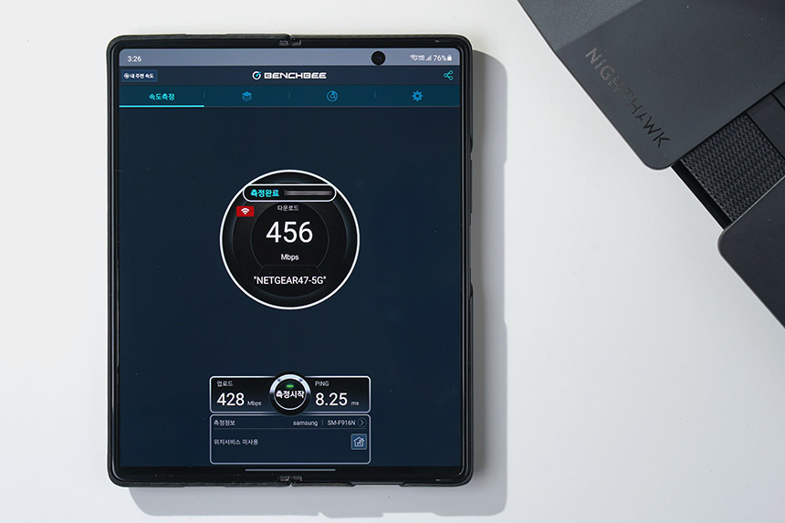 넷기어 RAX120 와이파이6 공유기의 무선 인터넷 속도를 확인해 보면 제가 사용하고 있는 KT 기가인터넷 500M의 속도를 완벽하게 지원하는 것을 확인할 수 있습니다. 그리고 사용하는 유선 인터넷의 종류에 따라서 더 빠른 속도를 보여줄 수 있을 것 같습니다.