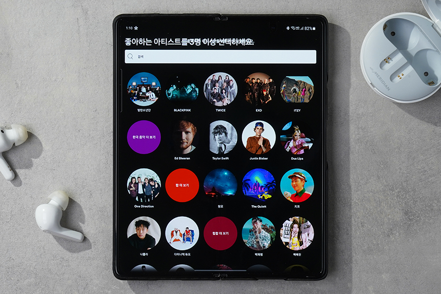스포티파이에 가입이 완료됨녀 좋아하는 아티스트를 선택하라는 메시지가 표시됩니다. 참고롤 스포티파이는 자동으로 음악을 선정해서 플레이리스트를 만들어주는 서비스가 핵심 기능이라고 할 수 있습니다.