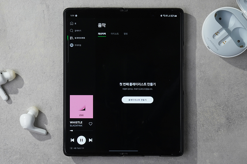내 라이브러리에서는 재생목록 등을 만들어 줄 수 있습니다. 그리고 프리미엄에서는 스포티파이의 유료 플랜을 확인할 수 있습니다. 외국과 같이 광고를와 함게 무료로 제공되는 요금제는 들어오지 않은 것 같습니다.