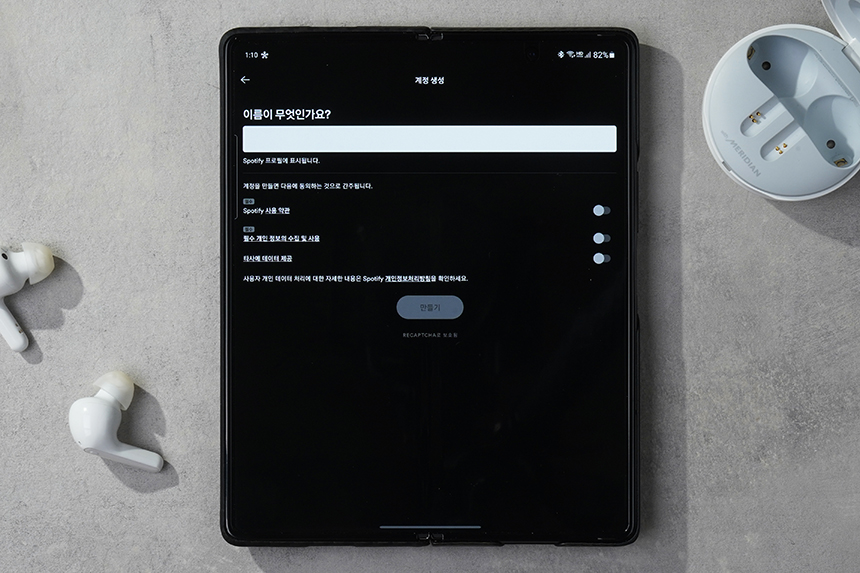 다음에는 스포티파이에서 사용될 이름을 입력해주어야 합니다. 그 외에도 사용약관이나 필수적인 정보 수집에 관련된 내용을 동의해주어야 합니다. 마지막에 있는 타사 데이터 이용은 체크를 하지 않는 것이 좋습니다.