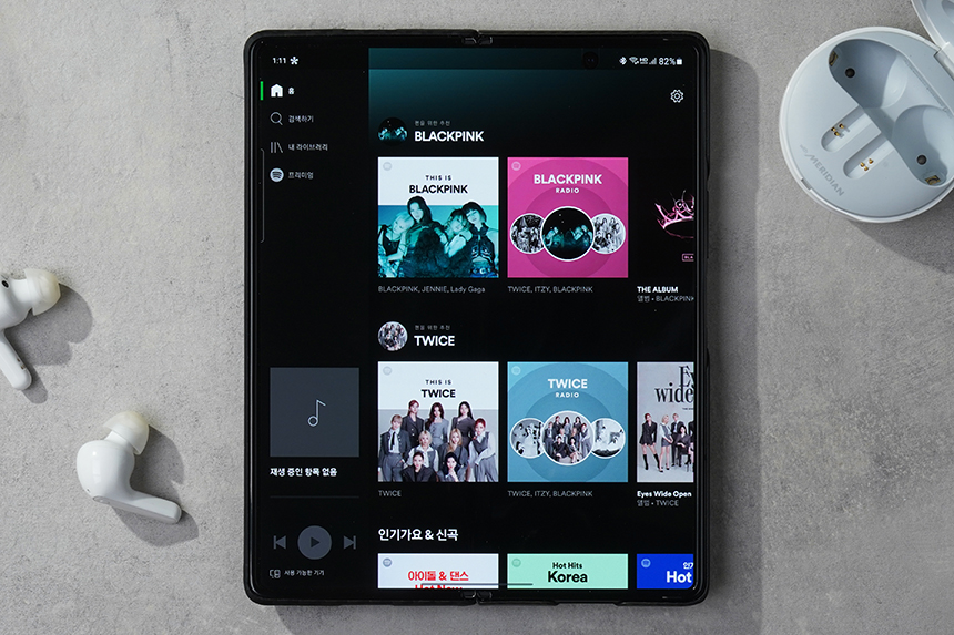 내 라이브러리에서는 재생목록 등을 만들어 줄 수 있습니다. 그리고 프리미엄에서는 스포티파이의 유료 플랜을 확인할 수 있습니다. 외국과 같이 광고를와 함게 무료로 제공되는 요금제는 들어오지 않은 것 같습니다.