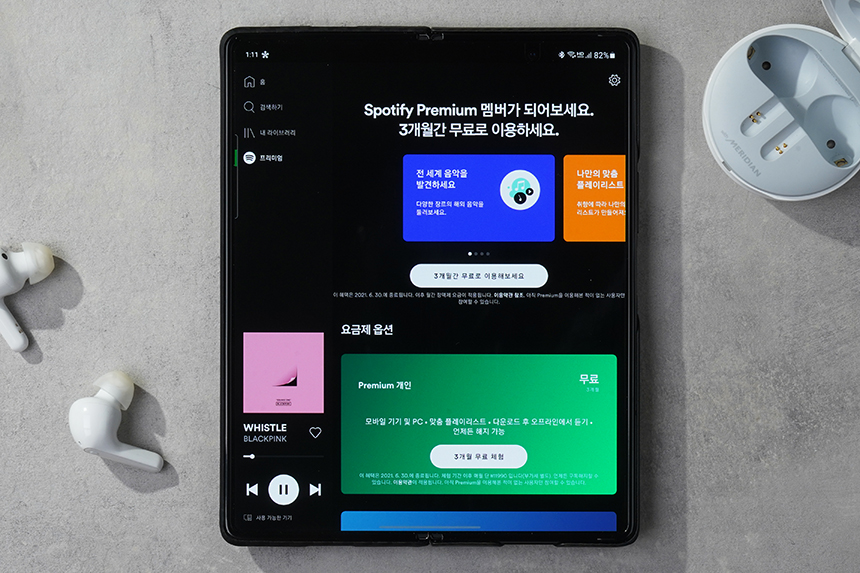 스포티파이는 현재 1개의 휴대폰에서 7일동안 프리미엄 멤버십을 무료로 사용할 수 있습니다. 결제 정보를 입력하지 않아도 되기 때문에 한 번 체험해 보시길 바랍니다.