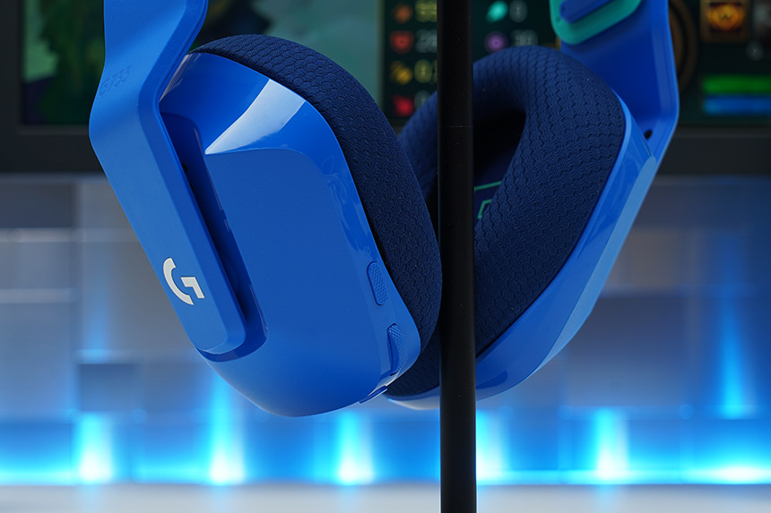 로지텍 G733 무선 게이밍 헤드셋의 왼쪽 하우징에는 온이어 음소거와 온/오프 스위치 그리고 볼륨 컨트롤이 배치되어 있습니다. 특히 일부 버튼은 표면에 엠보싱 처리가 되어 있어서 눈으로 확인하지 않고도 감각만으로 간편하게 조작할 수 있습니다.
