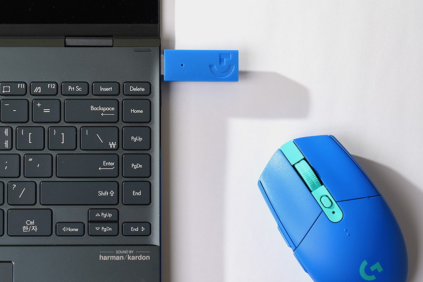 로지텍 G733 무선 게이밍 헤드셋의 사용법은 간단한 편입니다. 우선 LIGHTSPEED 무선 수신기(USB-A)를 자신이 사용하기 원하는 데스크톱이나 게이밍 노트북에 연결해주면 됩니다.