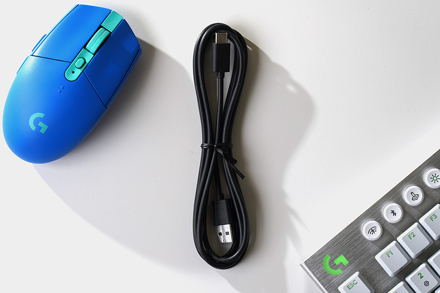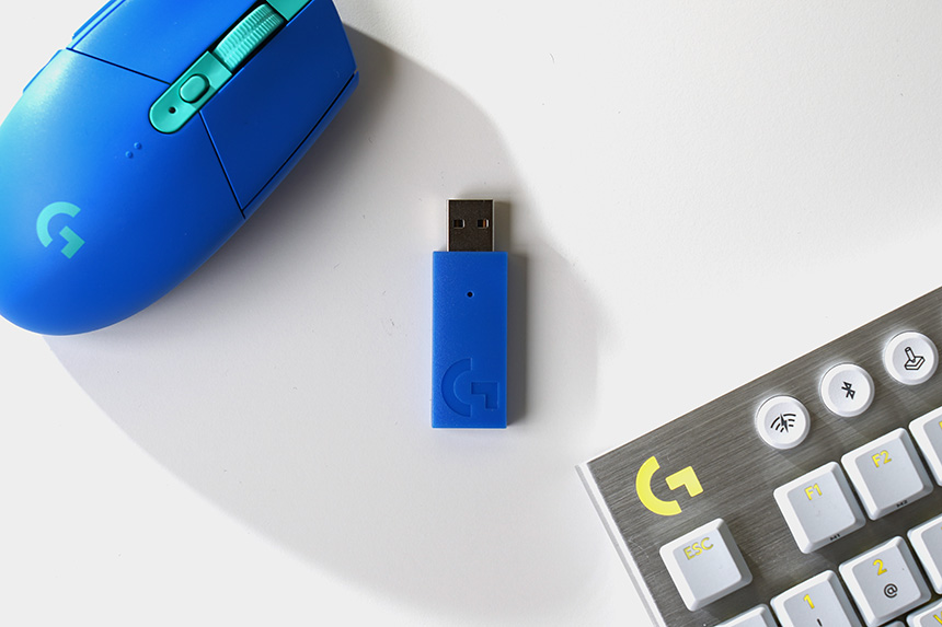 USB-A 커넥터를 제작된 LIGHTSPEED 무선 수신기도 하나 제공됩니다. 색상도 게이밍 헤드셋과 같이 블루 색상으로 맞춤이 되어 있고 크기 부담스럽지 않은 편입니다. 그리고 저는 가능하면 로지텍 G733 무선 게이밍 헤드셋와 가까운 USB 포트에 연결하는 것을 추천합니다.