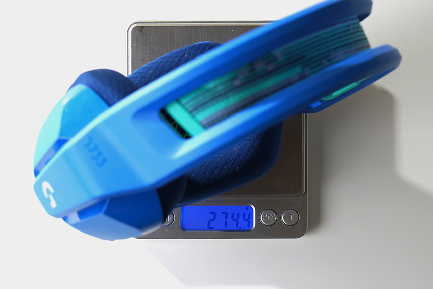 제가 로지텍 G733 무선 게이밍 헤드셋을 처음 개봉했을 때 놀라던 부분은 바로 무게였습니다. 실제로 마이크를 제외하고 274g으로 측정되었는데요. 무선으로 설계되었다는 점을 고려하면 상당히 가벼운 편이어서 장시간 부담 없이 사용할 수 있습니다.